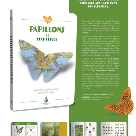 Observer, identifier, comprendre et s’émerveiller : tel est l’objet de ce guide consacré aux papillons de Marseille. Apprendre à reconnaître les espèces, c’est déjà leur accorder une attention particulière ; les suivre à travers leurs différents stades – de l’oeuf au papillon adulte – permet non seulement d’en saisir la complexité biologique, mais aussi de mieux les protéger. Fruit d’inventaires initiés en 2008 dans les parcs urbains et prolongés plus récemment dans les friches de la ville, cet ouvrage est le résultat d’un travail de terrain mené par des enseignants-chercheurs et des étudiants. Ces observations ont contribué à la création d’un espace unique : le Parc Urbain des Papillons, conçu à la fois comme lieu de découverte et comme laboratoire à ciel ouvert pour l’étude de la biodiversité urbaine. Le guide permet la détermination des 71 espèces recensées par nos travaux dans les parcs, friches et milieux urbains de Marseille, avec 35 espèces supplémentaires identifiées dans les espaces naturels périphériques d’après les bases de données, dont le Parc National des Calanques. Chaque fiche est illustrée par des photographies des principaux stades du cycle de vie. Au-delà d’un simple outil de détermination, cet ouvrage se veut également une invitation à porter un regard nouveau sur la diversité fragile et souvent insoupçonnée des papillons en milieu méditerranéen urbain.