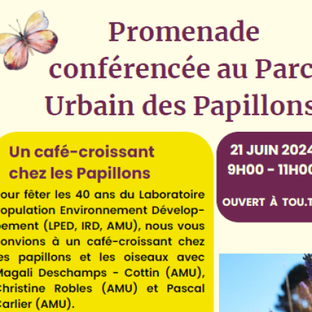 Afin de suivre cette biodiversité urbaine sur le long terme et de comprendre son évolution, le Laboratoire Population Environnement Développement (LPED) met en place en 2012 un dispositif expérimental de recherche unique en France : le Parc Urbain des Papillons (PUP). Il s'agit de créer une zone attractive et un havre de paix pour les papillons au coeur de la deuxième Ville de France. C'est cette démarche que nous souhaitons partager.